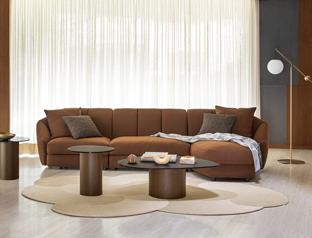 Jill is a fixed or modular sofa, with a dynamic presence and enveloping shapes. Inspired by the iconic and personal style of Pierre Paulin, it is modelled on the idea that beauty can embrace the body and the aesthetic space in which it is placed.