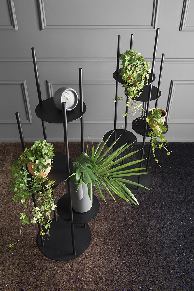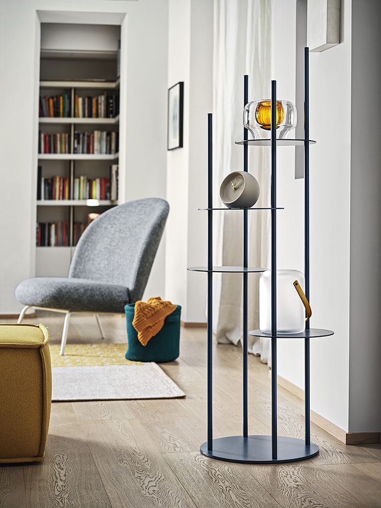 Totem porta oggetti a forma circolare su più livelli, realizzato completamente in metallo verniciato. New entry nella tipologia dei complementi d’arredo, CIRCLES rappresenta il modo più originale per tenere in vista gli oggetti più cari, sfruttando il minimo spazio possibile. Un totem con colonne in tubo metallico e 4 ripiani circolari in lamiera della stessa finitura delle colonne, posizionati ad altezze diverse come diverse sono le altezze dei tubi, per una inusuale combinazione geometrica.