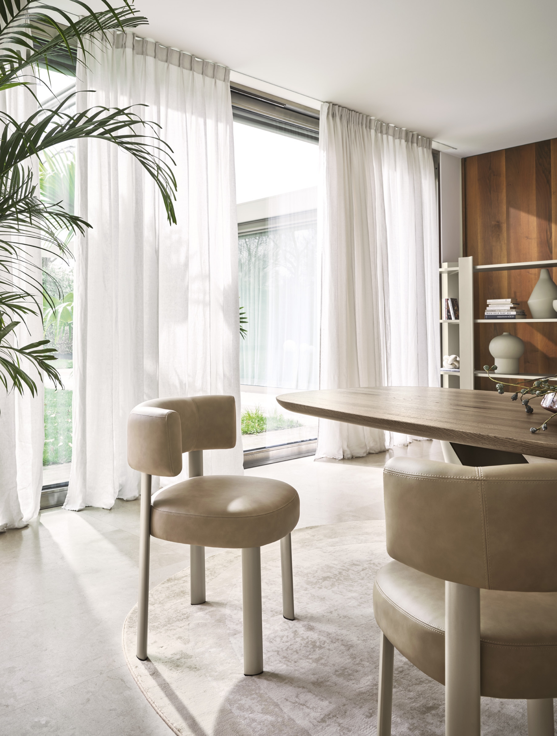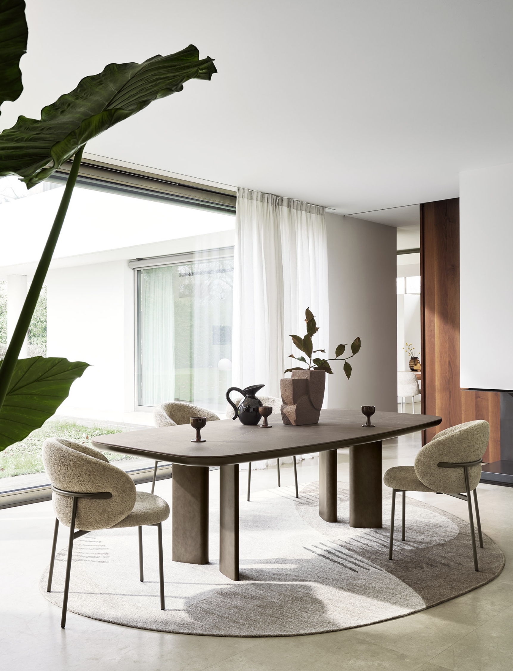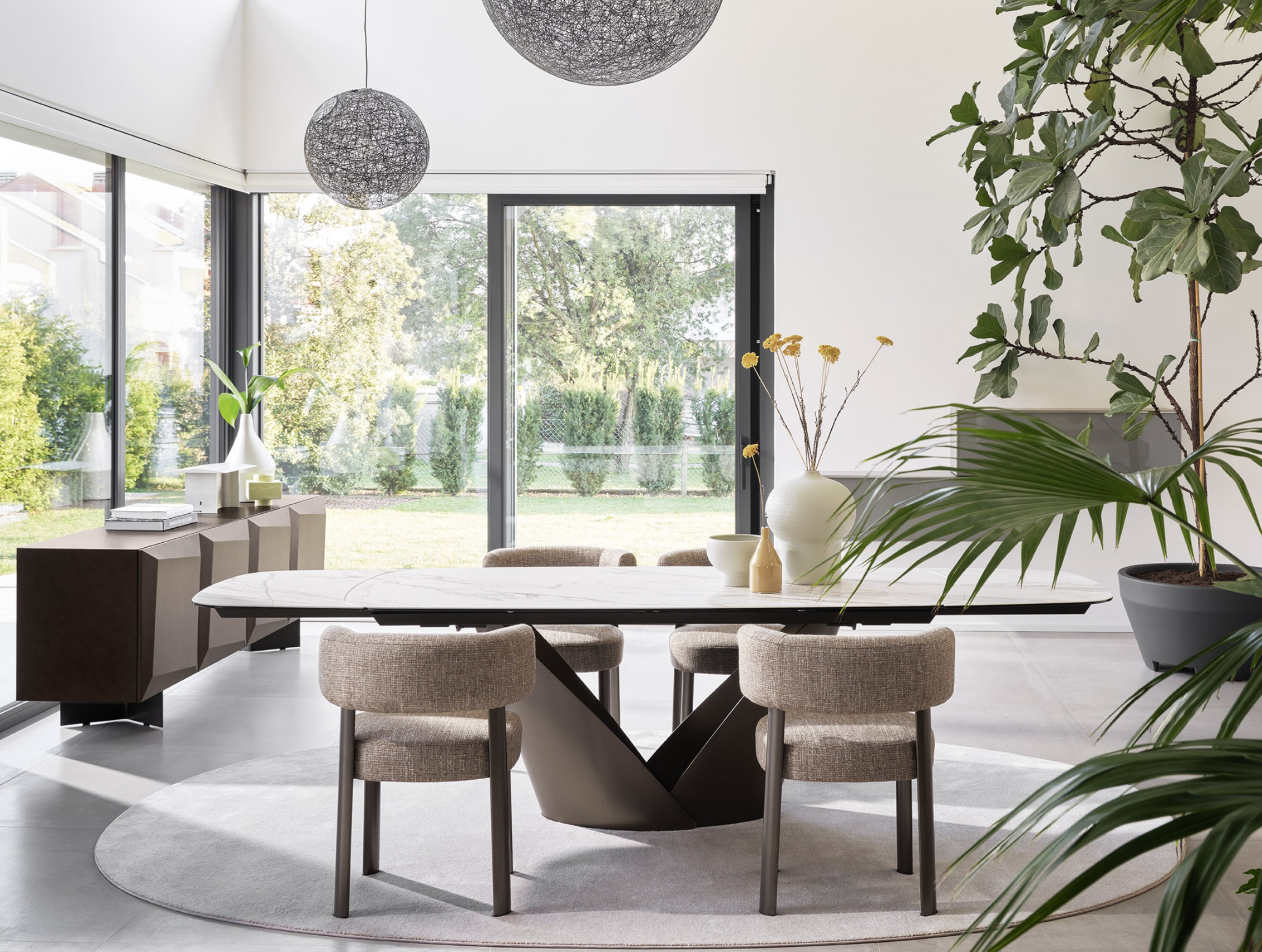 Sandy ist eine Tischkollektion, die durch ein Tropfenbein gekennzeichnet ist – ein Abschnitt mit raffiniertem Design, der verschiedene Geometrien von Tischplatten aufnehmen kann: rechteckig, rund und oval, sowohl fest als auch ausziehbar. Ein Tisch mit einer starken, aber dennoch schlichten und eleganten Präsenz, der sich leicht mit allen Stühlen der Calligaris-Kollektion kombinieren lässt.