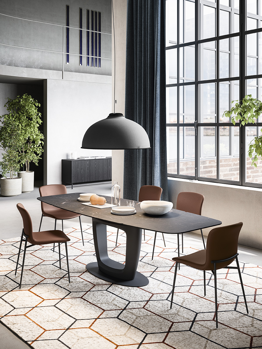LOVE is part of the new range of padded chairs with a softly sculpted silhouette and vaguely vintage vibe. One distinctive detail that unites all the components in the collection is the feature on the backrest which is an elegant extension of the metal legs. This strikingly stylish element bespeaks the unconventional design relationship between the fabric seat and the weight-bearing frame. Its yielding padding and the exquisite detailing on the metal frame make this Love chair into a piece of everyday luxury.