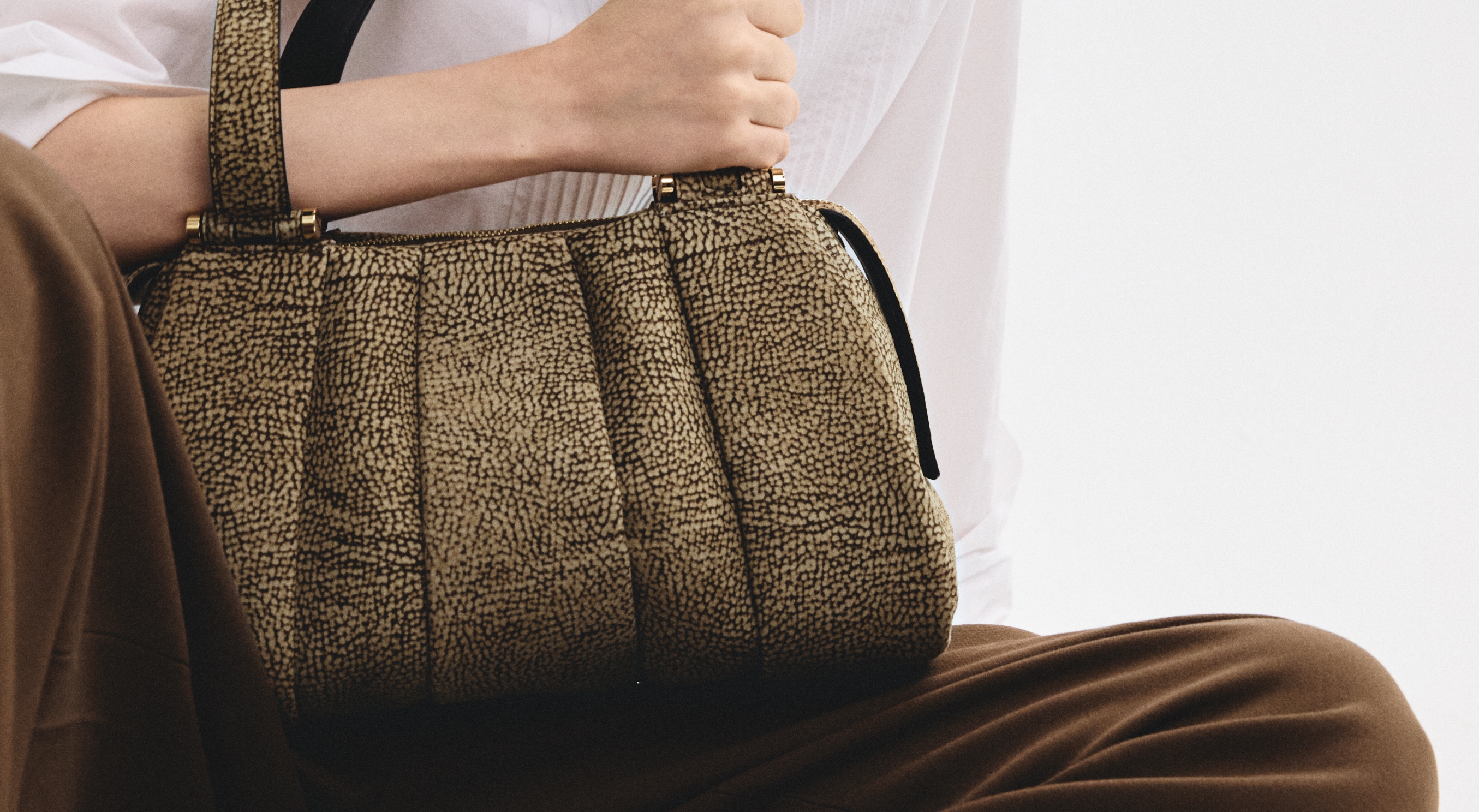 The design of Quadrotta meets Borbonese’s iconic OP suede.