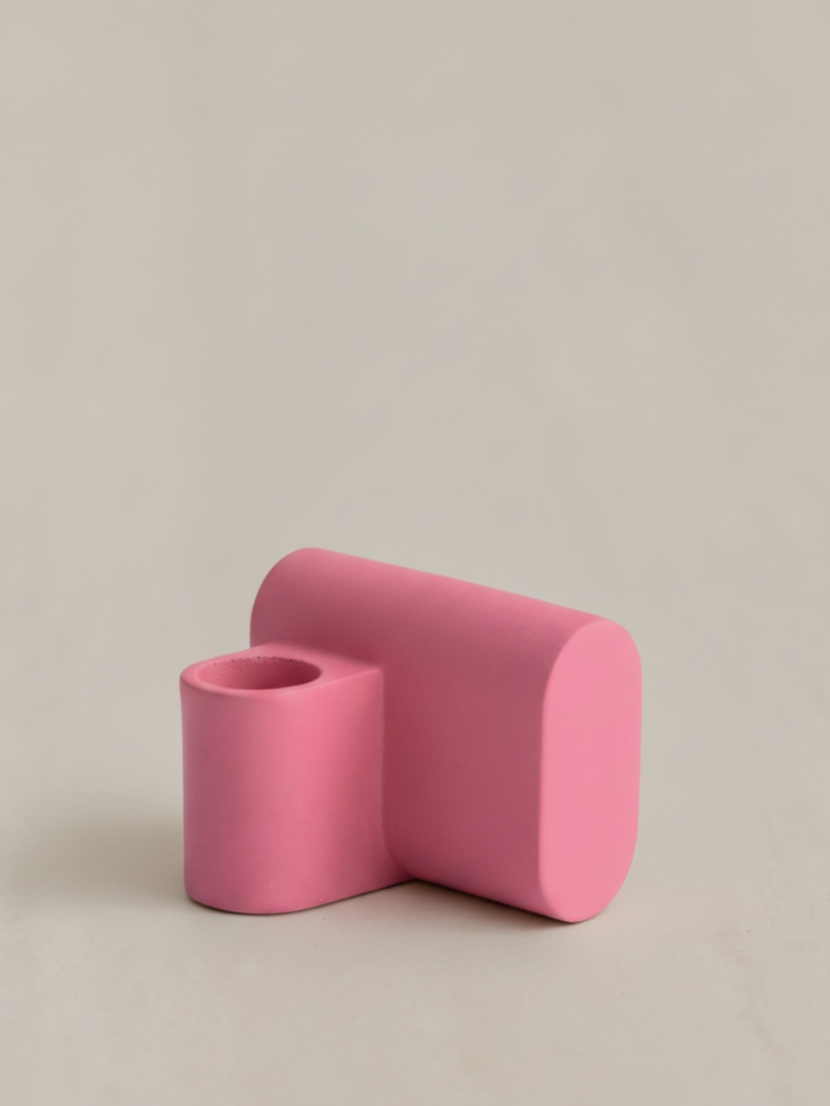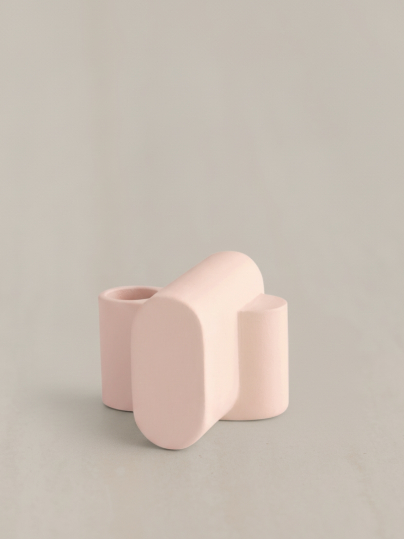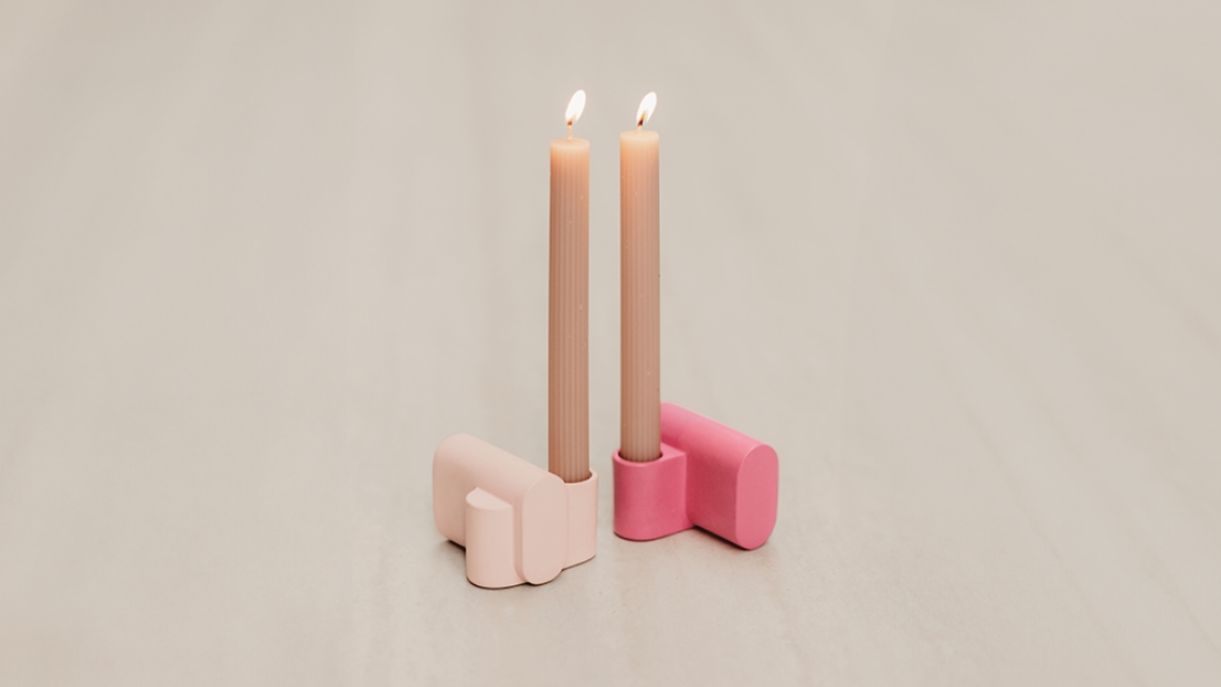 The candle holder was born from the creative vision of Ferriani.Sbolgi, featuring a matt lacquered finish and available in two colour variants. Two shapes meet in an embrace, holding a candle at the centre: a symbol of hope, care and the future.