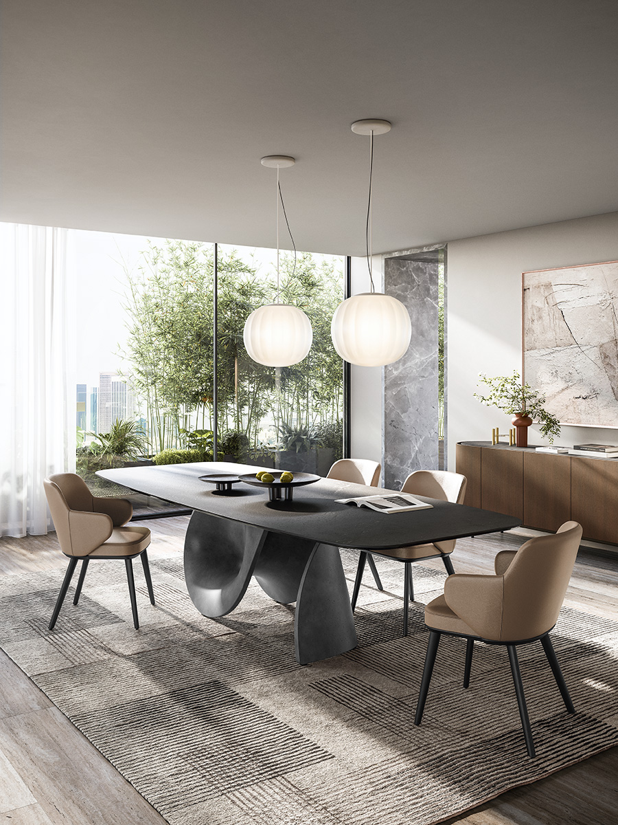 Thus, cement takes on a new aesthetic and functional meaning; the central base is an ideal solution and changes appearance according to the position you are looking from. Halfway between inspired creativity and functionality, this lightweight and sturdy table speaks to the soul. An ordinary everyday object has been transformed into a simple yet spectacular sculpture.