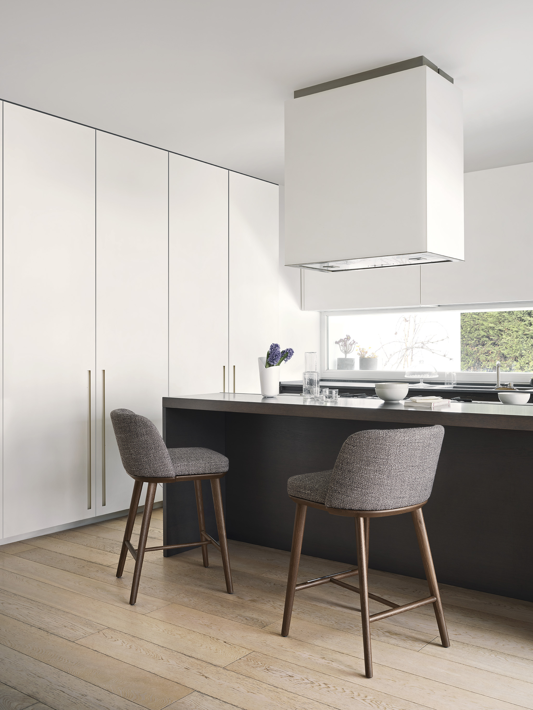 The family of comfortable FOYER seats beckons you to sink in, unplug and relax. The stool has been made from ash wood and features an extremely comfortable padded backrest and non-removable covers. A pristine design that will lend itself to any setting.